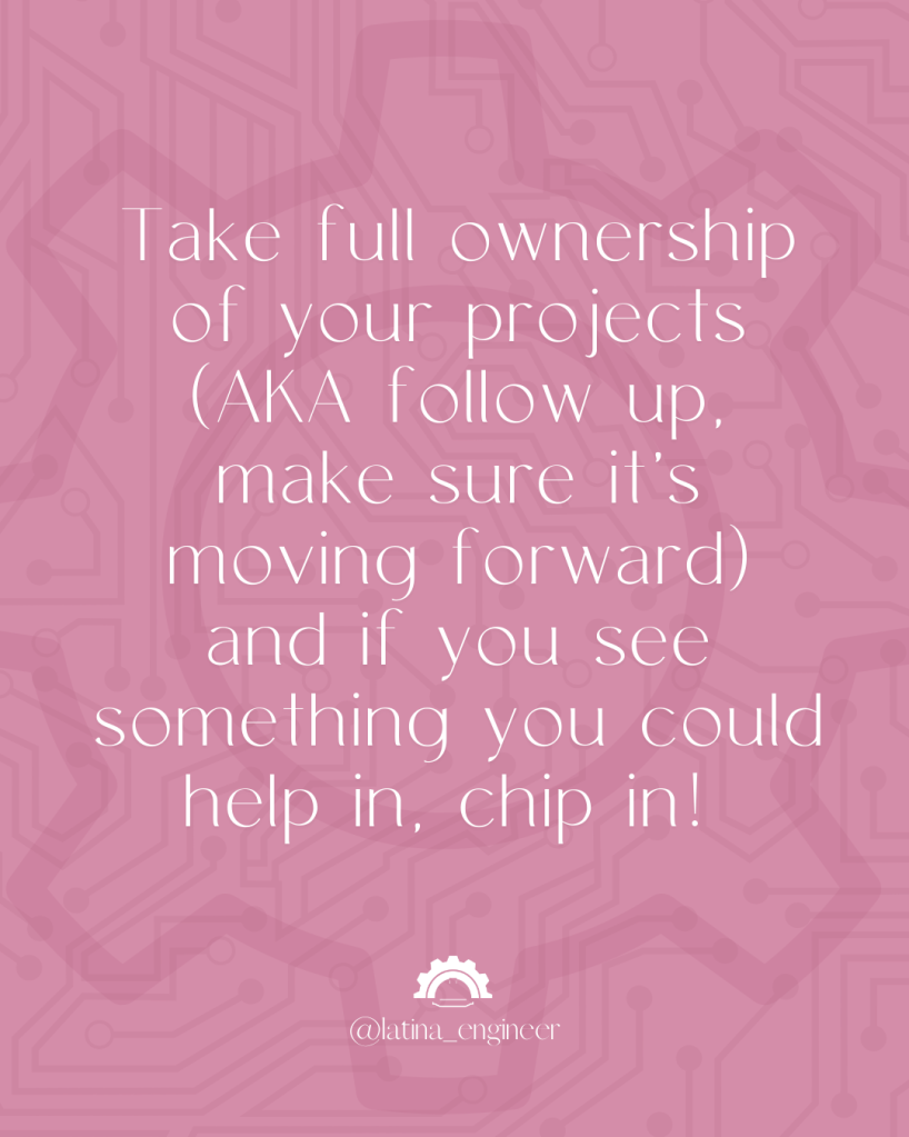 Lastly, take full ownership of your projects (AKA follow up, make sure it’s moving forward) and if you see something you could help in, chip in!